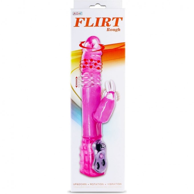Вибромассажер с клиторальным стимулятором с возвратно-поступательными движениями. Длина клиторального отростка 5 см. Многоскоростной мини электромотор с режимами вибрации и вращения.