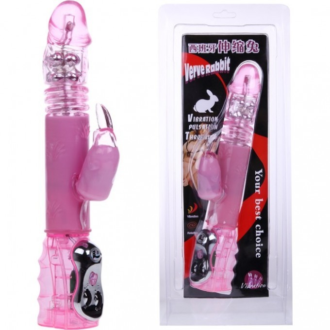 Вибромассажер с клиторальным стимулятором с возвратно-поступательными движениями. Длина клиторального стимулятора 5 см. Многоскоростной мини электромотор (режимы вибрации и вращения)